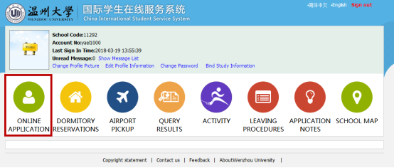 Enter the application home page after signing in. Click “Online Application” to enter application page as in the picture below.