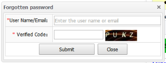 Click“Forgotten password”in the sign in page, fill in user name/e-mail and verified code and click “submit” as in the picture below: