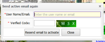 Click“Resend email to activate”, fill in user account or email, password and verified code, and click “Resend email to activate” in the pictures below: