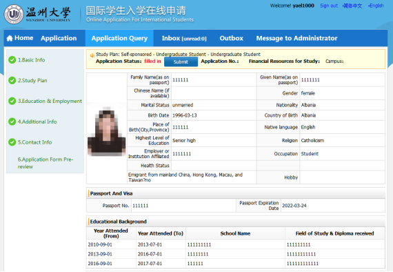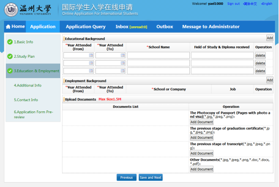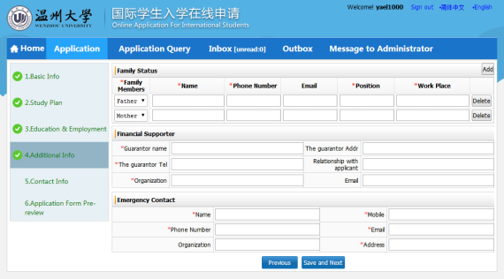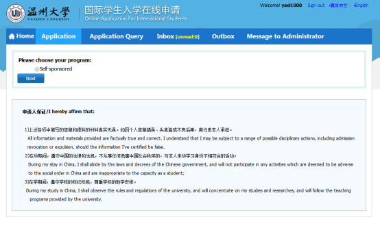 ☆Every applicant should submit only one application. If there is any mistake in application please contact us (admission@wzu.edu.cn) to change. Please do not re-submit application.