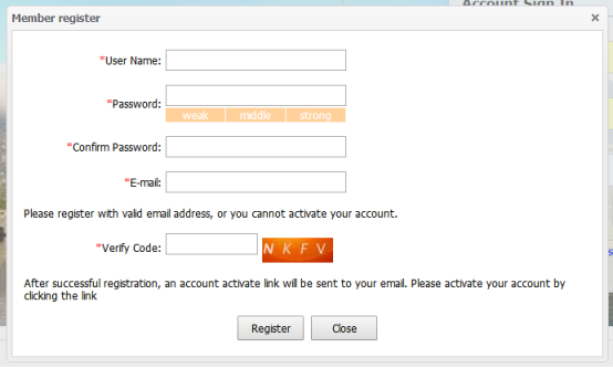 Attention: “﹡”means compulsory. The registration could not be submitted if it is empty! Attention: E-mail must be authentic. It is the only way to retrieve the password so please write an authentic one and remember it!