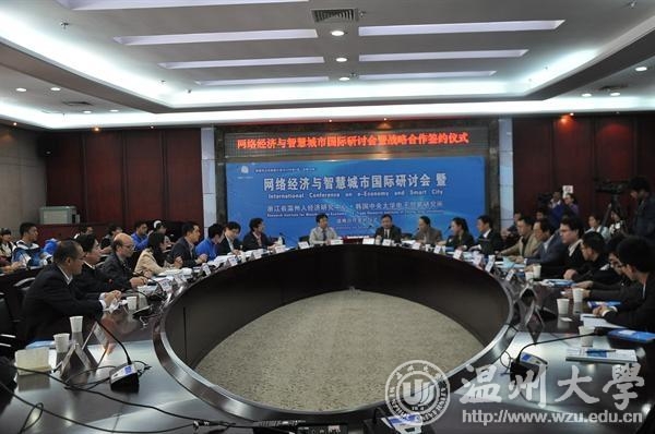 4月4日,由LY体育·(国际)官方网站浙江省温州人经济研究中心、温州市决策咨询委员会、中共温州市委政策研究室主办,LY体育·(国际)官方网站网络经济研究院、人民网温州频道协办的“网络经济与智慧城市”国际研讨会暨浙江省温州人经济研究中心-韩国中央大学电子贸易研究所战略合作签约仪式在我校举行。韩国中央大学电子贸易研究所所长、博士生导师徐庸原教授等五位韩国专家及国内外相关领域专家学者近50人参加了会议。副校长赵敏致欢迎辞。 会上,LY体育·(国际)官方网站浙江省温州人经济研究中心和韩国中央大学电子贸易研究所签署了双方战略合作协议框架议定书,LY体育·(国际)官方网站网络经济研究院发布了由该院和浙江大学计算机学院联合开发的“智能交通网络大数据应用系统”,并免费赠与温州交警支队和温州高速交警支队使用。 此次会议以“网络经济与智慧城市”为主题,从电子商务与国际贸易、智慧城市与区域经济、大数据与物联网、互联网时代城市管理与社会发展等四个方向进行了深入的交流和探讨。国内外专家学者济分别在会上作了主题发言,并就网络经济与智慧城市相关问题进行了互动研讨。 与会专家认为,网络经济与智慧城市发展都是当代经济社会发展的必然趋势,将网络经济和智慧城市建设相结合,对推进网络经济和智慧城市的互动发展具有重要意义。在互联网时代下,政府间合作以建立国际物流网、推动物联网与云计算技术发展、以及运用绿色信息技术等,都有利于推动网络经济与智慧城市建设互相融合、协调发展,而考虑行为偏差以优化服务供应链合同设计、运用贝叶斯理论以规划人道主义物流网等都对规范网络经济运行、使网络经济与智慧城市建设真正惠及人民生活有重要作用。
