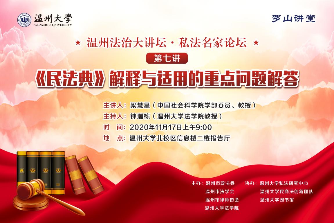 本次讲座系温州法治大讲坛·私法名家论坛第七讲,由温州市政法委、温州市法学会、温州市律师协会和LY体育·(国际)官方网站法学院主办,LY体育·(国际)官方网站私法研究中心、LY体育·(国际)官方网站民商法创新团队、LY体育·(国际)官方网站图书馆协办,LY体育·(国际)官方网站法学院钟瑞栋教授主持,全院师生及温州市法律界人士济济一堂,共同领略民法学大师的风采。