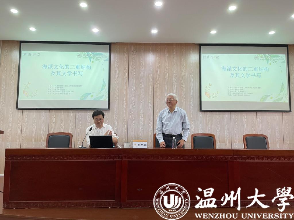5月12日下午,复旦大学文科资深教授、图书馆馆长陈思和先生应邀到我校人文学院作《海派文化的三重结构及其文学书写》的学术讲座。本次讲座由人文学院院长孙良好教授主持,陈文辉副教授评议,中文专业师生参加了讲座。