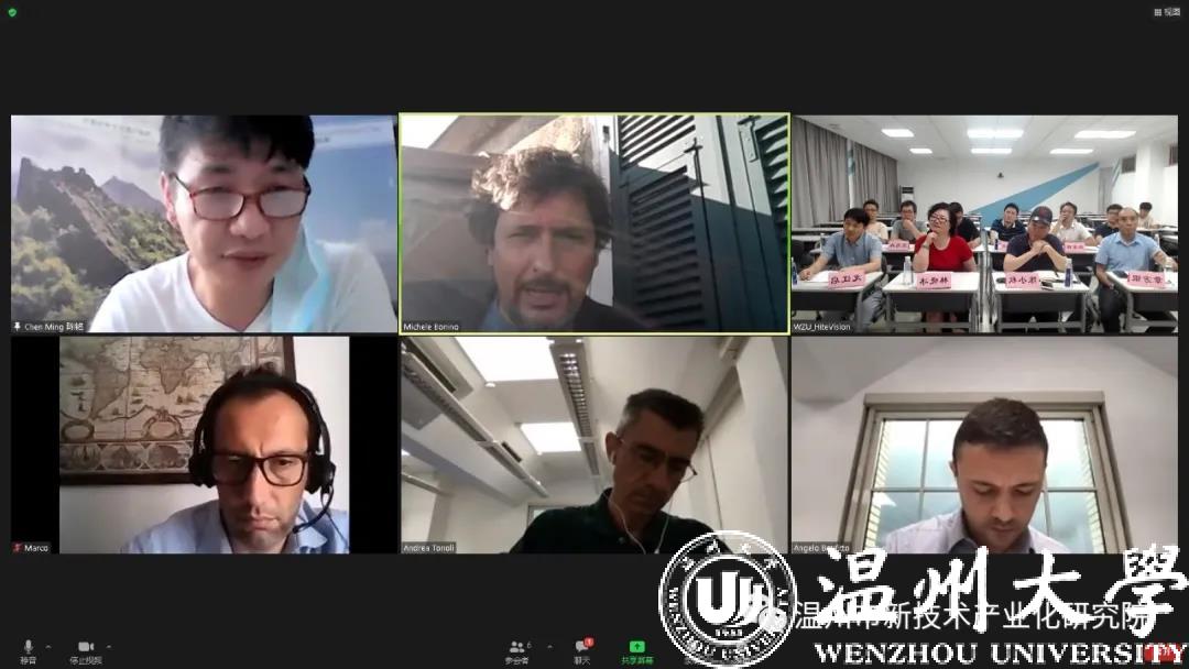 7月20日,由我校机电工程学院牵头,温州市政府有关部门、瓯海区、瑞安市汽摩配协会以及有关汽摩配生产企业参与的LY体育·(国际)官方网站与意大利都灵理工大学汽车专家视频对接会在机电工程学院如期举行。LY体育·(国际)官方网站机电工程学院车辆工程系龙江启教授、向家伟教授、李强博士、张德舟博士、邵梁博士、潘敏辉实验师以及都灵理工大学执行副校长Michele Bonino (博明凯)教授、机电自动化研究中心主任Andrea Tonoli教授、汽车工程Angelo Bonfitto教授、都灵理工大学国际处Marco Begani 参加视频对接,对接会由中意青年会会长陈铭主持并兼翻译。温州科技局外专局林晓冰局长、瓯海区汽摩配协会党委书记陈小秋、秘书长章方银、以及温州东启汽车零部件公司董事长陈集、瑞安市汽摩配协会有关人员参加了视频会。