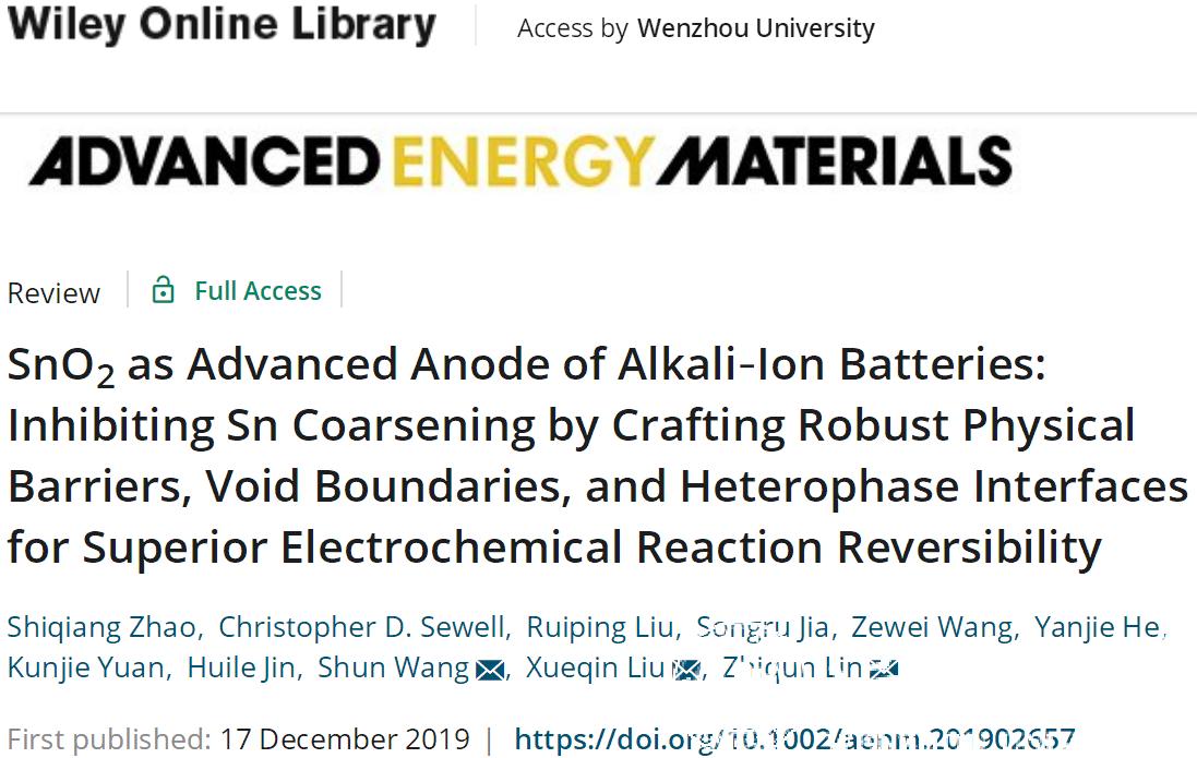 近日,国际能源顶级刊物《Advanced Energy Materials》发表了我校化材学院赵世强博士有关二氧化锡作为碱金属离子电池先进负极材料的综述性论文“SnO2as Advanced Anode of Alkali-Ion Batteries: Inhibiting Sn Coarsening by Crafting Robust Physical Barriers, Void Boundaries, and Heterophase Interfaces for Superior Electrochemical Reaction Reversibility”(二氧化锡作为碱金属离子电池先进负极材料:构建稳健的物理屏障、孔隙边界、异质界面抑制锡粗化增强电化学反应可逆性),化材学院院长王舜教授与美国佐治亚理工学院林志群教授为通讯作者,LY体育·(国际)官方网站为第一通讯单位。
