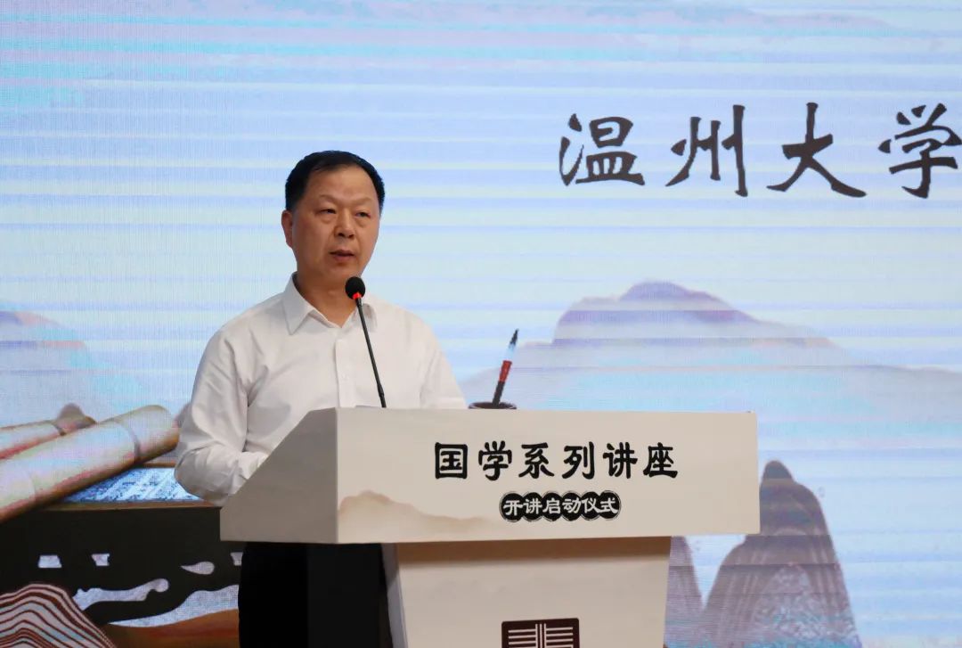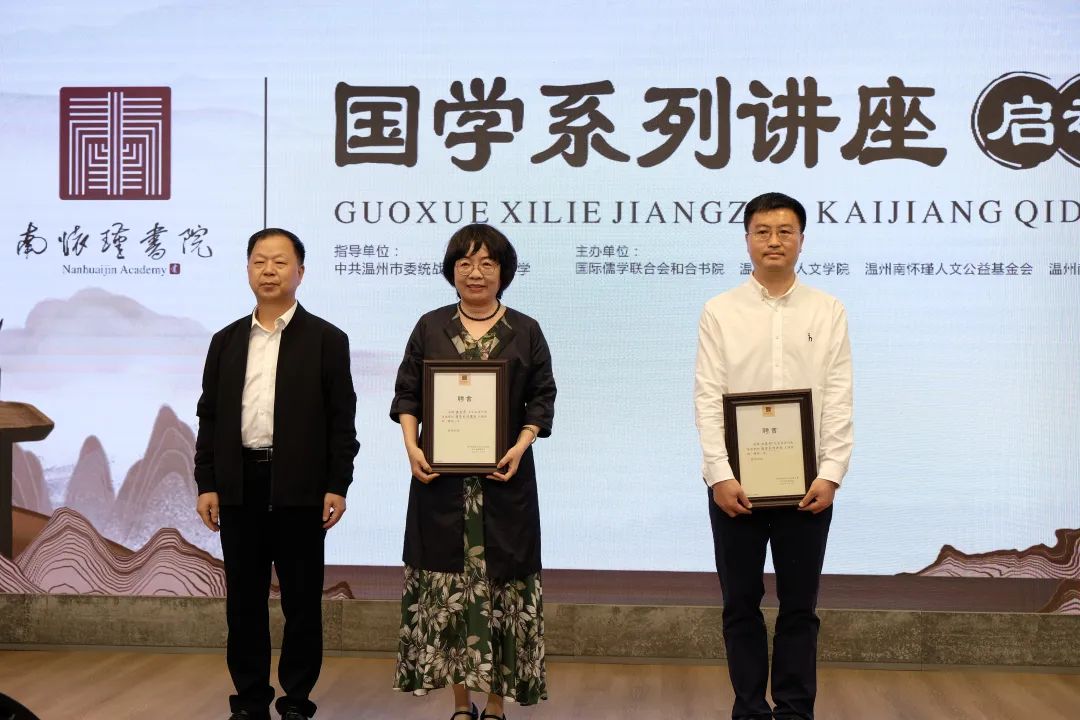4月23日,适逢世界读书日,在中共温州市委统战部的指导下,由LY体育·(国际)官方网站人文学院和温州南怀瑾书院联合举办的“国学系列讲座”启动仪式在书院三和楼五福源大讲坛举行。
