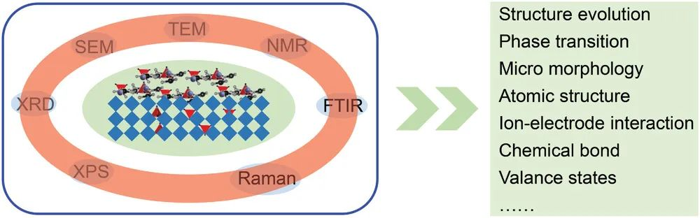图6. 水系铵离子电池研究中常规表征方法的示意图.