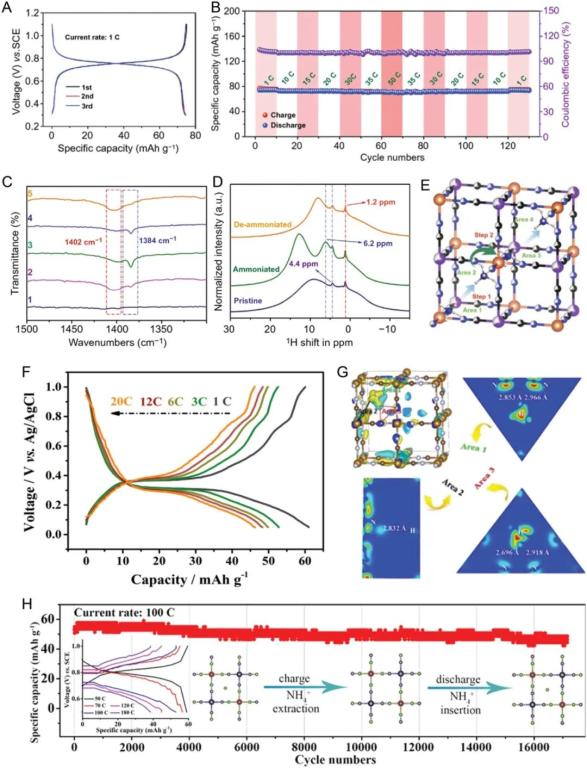 如上所述,包括PBA、金属氧化物和有机材料在内的各种材料已广泛用作水系 AIB 的阴极。其中,具有刚性骨架结构的PBA具有合成简单、成本低、扩散通道大到足以容纳大尺寸NH4+离子和水分子、循环寿命超过10 000次及以上等巨大优势。以及显着的倍率性能,是非常有前途的水系 AIB 正极材料。当然,针对不同的应用目的,其他类型的正极材料也值得关注。