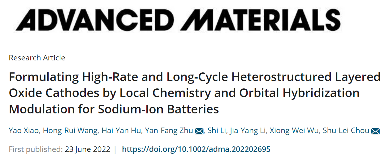 近日,我校化材学院碳中和技术创新研究院侴术雷/肖遥/朱燕芳团队在国际顶级期刊《Advanced Materials》上发表题为“Formulating High-Rate and Long-Cycle Heterostructured Layered Oxide Cathodes by Local Chemistry and Orbital Hybridization Modulation for Sodium-ion Batteries”的研究论文。本文提出基于局域化学与轨道杂化定制化构筑P2/O3异质结构层状氧化物正极材料用于高倍率长循环性能钠离子电池。基于经典的P2-Na2/3Ni1/3Mn2/3O2正极材料作为概念研究模型,通过Sn元素局域取代Mn元素过渡金属位点,成功设计具有P2组成,但表现出P2/O3的反常异质结构。采用宏观和原子尺度的球差电镜表征技术进一步证实P2/O3-Na2/3Ni1/3Mn1/3Sn1/3O2 (P2/O3-NaNMS)层状异质共生结构。该正极材料表现出优异的倍率性能和循环稳定性(在2C下,循环600圈后容量保持率高达82.16%),且对硬碳负极展现出优异的兼容性。同时,P2/O3-NaNMS正极材料的煅烧形成过程与充放电过程中高度可逆的P2/O3-P2/O3/P3-P2/P3-P2/O3/P3- P2/O3动态演化过程也通过原位高温XRD与原位充放电XRD得到揭示。另外,运用理论计算从作用机制进一步阐述了Sn元素取代对材料本征的局域电子结构与轨道杂化及其结构特性和电化学行为的影响。相关研究结果发表于《Advanced Materials》(https://onlinelibrary.wiley.com/doi/abs/10.1002/adma.202202695),LY体育·(国际)官方网站化学与材料工程学院碳中和技术创新研究院为第一通讯单位,LY体育·(国际)官方网站肖遥瓯江特聘教授为本文第一作者。