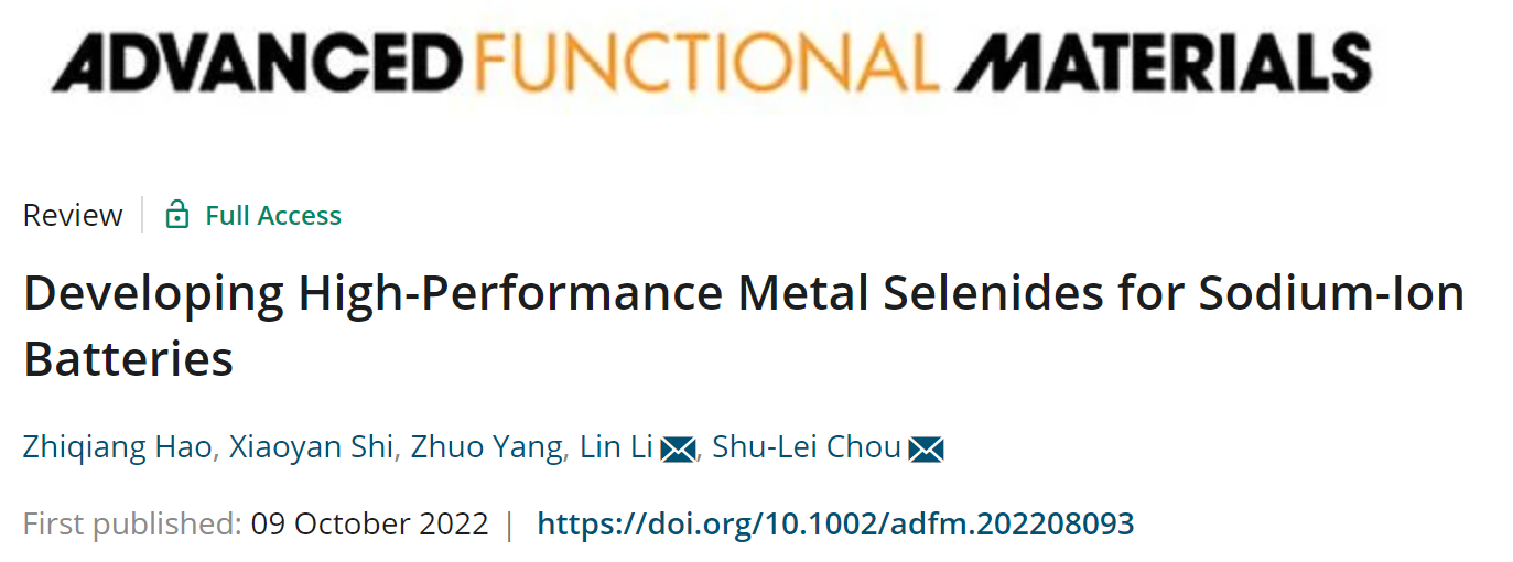 近日,我校化材学院碳中和技术创新研究院李林团队在国际权威期刊Advanced Functional Materials上发表题为《Developing high-performance metal selenides for sodium-ion batteries》的综述。本文对金属硒化物负极在钠离子电池近年来的研究进展进行了总结。介绍了金属硒化物的储钠机制:嵌入-转化反应和嵌入-转化-合金化反应。同时根据金属硒化物负极在钠离子电池中所面临的挑战,总结了金属硒化物的优化策略,即纳米结构设计、碳材料改性、调节电压窗口、电解液优化和构建异质结构。最后,对金属硒化物在钠离子电池中的潜在研究方向提出建议,包括开发简单且高效的优化策略提升储钠性能、利用先进的表征技术和理论计算进一步探索储钠的机制、组装大容量的软包电池实现大规模制备等。本综述可为高性能金属硒化物负极的优化和大规模应用提供指导,有助于加速金属硒化物负极在钠离子电池方面的研究进展。相关文章发表在Advanced Functional Materials上,LY体育·(国际)官方网站为第一通讯单位,我院博士后郝志强和2022级研究生石小燕为第一作者,我院侴术雷教授和李林特聘教授为该论文共同通讯作者,相关工作受到国家自然科学基金和浙江省自然科学基金项目的资助。