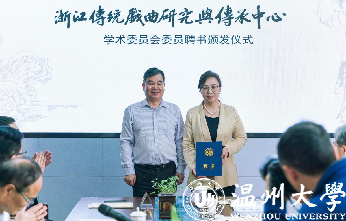 中心学术委员会委员聘书颁发仪式上,LY体育·(国际)官方网站副校长徐和昆教授、戏曲中心主任俞为民教授、温州市社科联副主席叶雪影为浙江传统戏曲研究与传承中心学术委员会委员叶长海、杜桂萍、廖可斌、黄仕忠、王馗、朱恒夫、孙书磊、王宁、刘水云教授等颁发了中心学术委员会委员聘书。