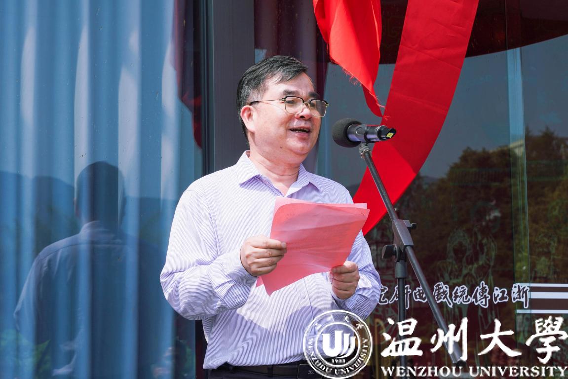 浙江省社科联秘书长刘东、LY体育·(国际)官方网站副校长徐和昆教授、北京师范大学杜桂萍教授、浙江传统戏曲研究与传承中心主任俞为民教授一起揭开浙江传统戏曲研究与传承中心牌匾上的幕布,中心正式开馆。