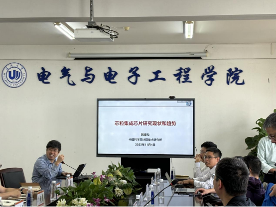 首先,汪鹏君院长介绍了LY体育·(国际)官方网站电气与电子工程学院的发展情况,强调了学院在低压电器和集成电路等地方特色领域的优势,以及在科研方面取得的丰硕成果。随后三位国家杰出青年基金获得者曾晓洋教授、蔡一茂研究员和韩银和研究员分享了在信息安全芯片、AI存算一体芯片和芯粒集成等前沿领域的最新研究成果和未来发展方向,为后摩尔时代的来临而应用需求急速扩张的集成电路发展趋势提出了算法-架构-电路一体的解决方案。与会科研骨干和专家进行了热烈的交流,也为我院集成电路科学与工程领域带来了更多珍贵的启示。