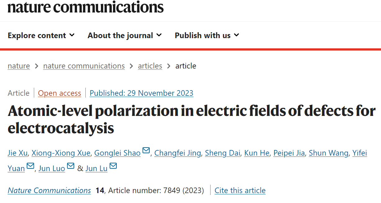 “Atomic-level polarization in electric fields of defects for electrocatalysis.” https://www.nature.com/articles/s41467-023-43689-y