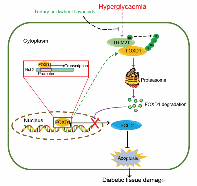 苦荞黄酮通过TRIM21-FOXD1-BCL2信号轴抵抗高血糖诱导的细胞死亡