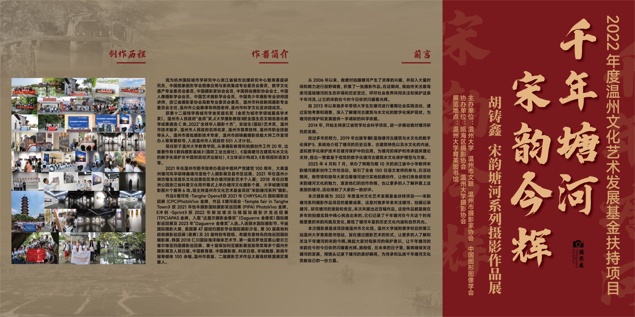 我校教育学院胡铸鑫副教授以观片会的形式向与会者展示和研讨了主持的温州文化艺术发展基金2022年度资助项目宋韵塘河系列摄影作品巡展的创作过程,展示了“千年塘河 宋韵今辉——胡铸鑫宋韵塘河系列”摄影作品近200幅。所有作品均紧紧围绕主题,取材拍摄于温瑞塘河流域上的宋韵今辉。作品得到了大家的一片鼓掌。从2006年开始,胡铸鑫便对拍摄塘河产生了浓厚的兴趣,并投入大量时间和精力进行田野调查,积累了一批摄影作品。2019年,胡铸鑫出版专著《温瑞塘河古建筑与水文化的数字化保护》,获得第十二届钱学森城市学金奖提名奖(该奖为城市学学术最高奖)。个人获2022“全球华人摄影十杰”称号,安徒生(国际)艺术奖,温州市胡铸鑫摄影技能大师工作室领办人等荣誉称号。