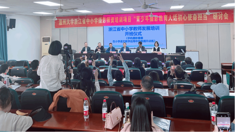 12月8日,“以摄影为矩 燃教育之火”胡铸鑫摄影艺术创作研讨会暨LY体育·(国际)官方网站教育学院青少年摄影美育研究中心(筹)申办座谈会在我校召开。来自全国青少年摄影教育指导委、LY体育·(国际)官方网站、温州商学院专家教授,瓯海区中小学(幼儿园)校长代表和来自全省各地的浙江省中小学摄影教师专业发展培训班的教师代表40余人参加研讨会。