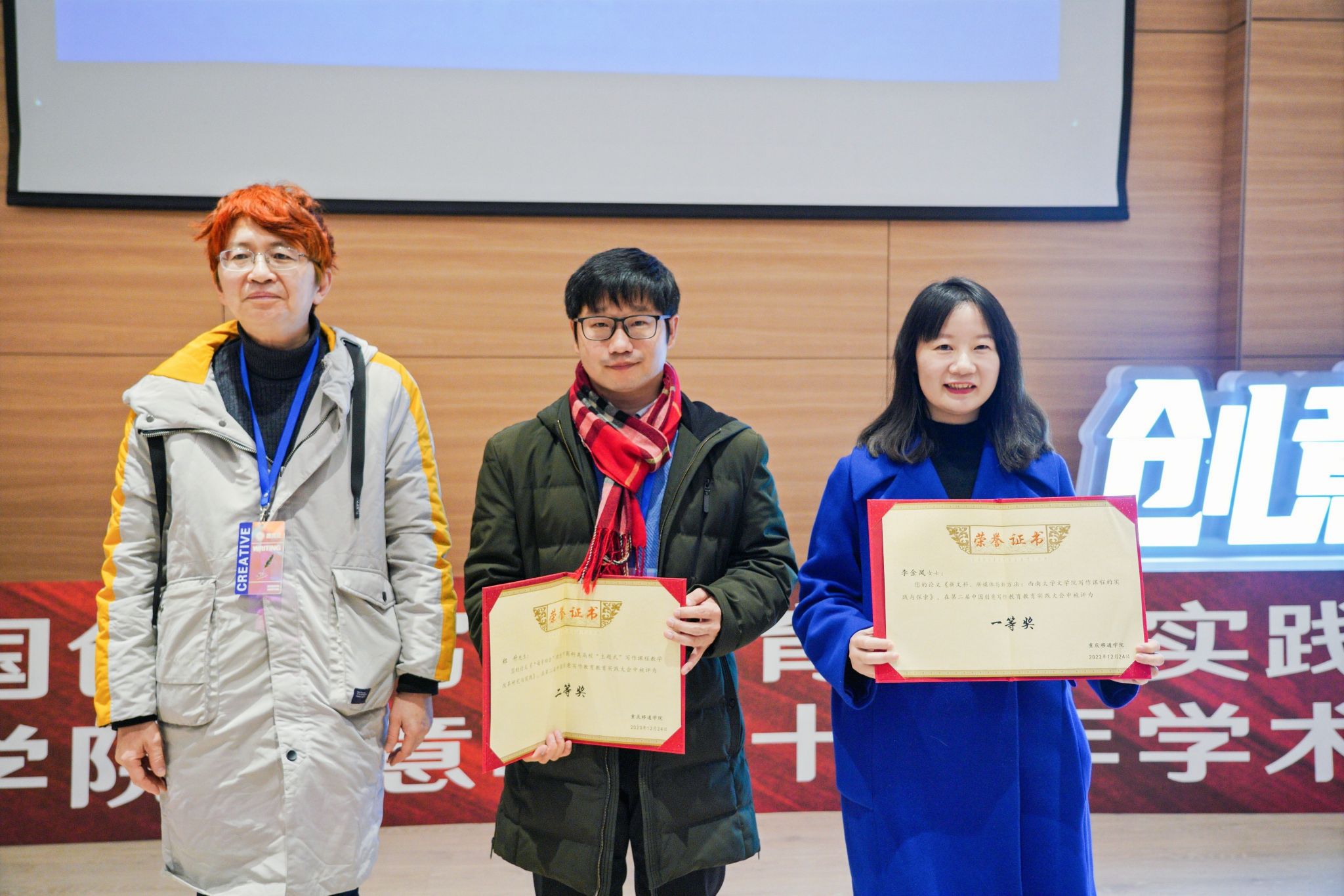 12月23-24日,第二届中国创意写作教育教学实践大会暨重庆移通学院创意写作十周年学术研讨会在重庆移通学院合川校区隆重召开。来自上海大学、复旦大学、中国人民大学等40余所高校的100多位专家学者齐聚山城。LY体育·(国际)官方网站人文学院的李广旭博士和刘卫东博士作为温大代表以线下线上的方式出席了本次盛会,并在大会上展示了LY体育·(国际)官方网站创意写作教研成果。
