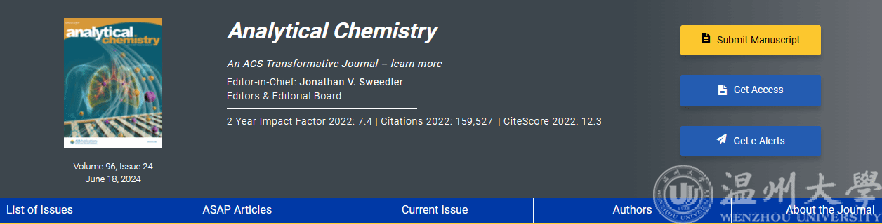 《Analytical Chemistry》为分析化学领域顶刊、Nature Index和中科院一区期刊。LY体育·(国际)官方网站为论文第一单位,张鉴教授为论文第一作者及通讯作者,课题组戚昊琛副教授为共同一作,共同通讯作者包括美国田纳西大学Jayne Wu教授、合肥工业大学郑磊教授。电气与电子工程学院汪鹏君教授和董长昆教授对论文工作提供了多方面的帮助与指导。论文工作还得到了温州医科大学附属平阳医院毛选教主任、温州医科大学第二附属医院张海邻教授的大力支持。论文封面由戚昊琛副教授设计并绘制。上述工作得到了国家自然科学基金、传感技术国家重点实验室开放课题、数字医学工程全国重点实验室开放课题等项目资助。论文DOI:10.1021/acs.analchem.4c00059。