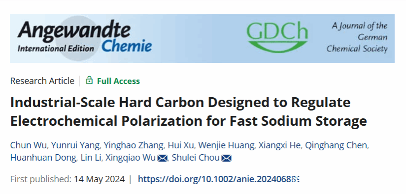 该成果以“Industrial-scale Hard Carbon Designed to Regulate Electrochemical Polarization for Fast Sodium Storage”为题,发表在Angewandte Chemie International Edition上。我院博士后吴春、2021级硕士生杨云锐为论文共同第一作者,侴术雷教授、吴星樵博士为该论文共同通讯作者,LY体育·(国际)官方网站为第一通讯单位。相关工作受到国家自然科学基金、浙江省自然科学基金、温州市自然科学基金等资助。