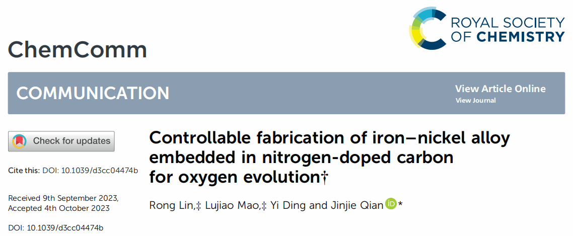 近期我校化学与材料工程学院21级材料专业本科生林荣在钱金杰副教授的指导下以第一份作者身份在自然指数收录的期刊《Chemical Communications》发表学术论文、以共同第一作者身份分别在一区期刊《Advanced Science》、《Journal of Colloid and Interface Science》发表学术论文、以参与作者身份在《Chemical Communications》发表学术论文。林荣同学不仅科研成绩突出,德智亦全面发展,连续三年取得班级智育/综测第一,获国家奖学金、两次浙江省政府奖学金,三次校一等奖学金等;获浙江省大学生化学竞赛二等奖、浙江省大学生环境生态科技创新大赛三等奖等;主持2024年浙江省大学生科技创新活动计划(新苗人才计划)项目,2024年度国家级创新创业训练项目计划。