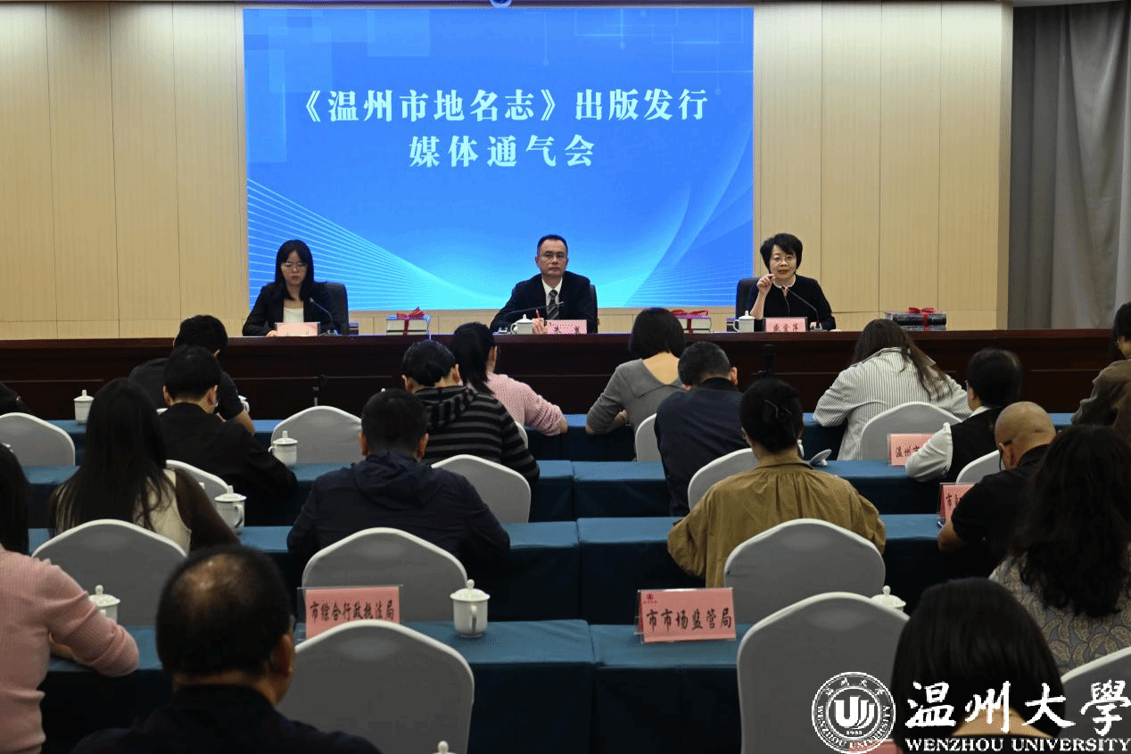 10月31日上午,《温州市地名志》出版发行媒体通气会在温州市民政局召开。本次会议由温州市民政局主办,温州市委统战部、市委党史研究室(市地方志办公室)、市经信局、市教育局、市民宗局、市公安局、市自然资源和规划局、市住建局、市交通运输局、市水利局、市农业农村局、市商务局、市文化广电旅游局、市卫生健康委、市市场监管局、市统计局、市综合行政执法局、LY体育·(国际)官方网站、温州市图书馆、各县(市、区)民政局、龙港市社会事业局、海经区社会事务管理局等单位以及《浙江日报》《温州日报》《温州晚报》《温州都市报》《温州新闻联播》《百晓讲新闻》等新闻媒体参加了会议。LY体育·(国际)官方网站盛爱萍教授和李爱红、李惠超、胡铸鑫、刘慧青五位老师参加了此次会议。