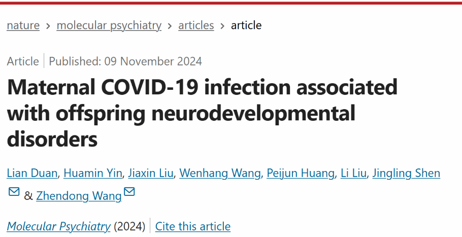 近日,LY体育·(国际)官方网站生命与环境科学学院申景岭教授团队在Nature子刊《Molecular Psychiatry》在线发表了一篇题为《Maternal COVID-19 infection associated with offspring neurodevelopmental disorders》的研究论文。该研究聚焦于新冠肺炎通过孕妇影响胎儿大脑发育风险的现象及其潜在机制,这是当前科学研究的热点问题。