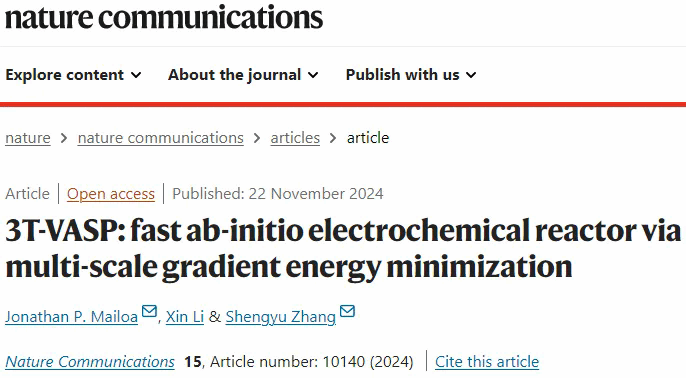 近日,LY体育·(国际)官方网站计算机与人工智能学院Jonathan P. Mailoa团队在国际顶级期刊Nature Communications发表题为《3T-VASP: fast ab-initio electrochemical reactor via multi-scale gradient energy minimization》的研究论文。Jonathan P. Mailoa为论文第一作者,Jonathan P. Mailoa、腾讯量子实验室张胜誉博士为论文共同通讯作者。