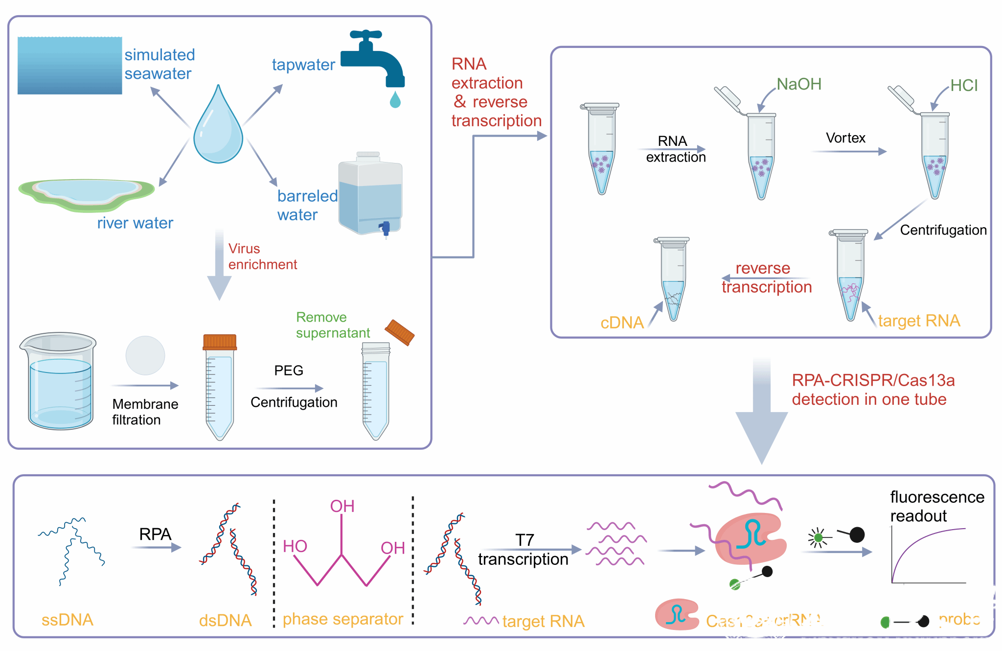 LY体育·(国际)官方网站生命与环境科学学院吴明江教授团队结合自身优势开展环境毒理和病原检测等交叉研究,取得了系列研究成果。近日,苏来金教授课题组在环境领域著名学术期刊Environmental International杂志上(SCI一区TOP 期刊,IF=10.3)发表了题为“CRISPR/Cas13a combined with reverse transcription and RPA for NoV GⅡ.4 monitoring in water environments”的研究性论文。该论文基于重组酶聚合酶扩增技术(RPA)和CRISPR/Cas13a系统,建立了一种适用于多种水环境、准确可靠、简便快速的GⅡ.4型诺如病毒定量检测方法,该方法在复杂水环境和资源有限地区的诺如病毒快速检测表现出巨大的应用潜力。