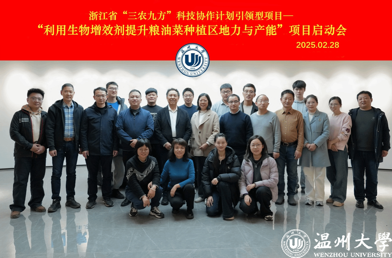 2月28日下午,由LY体育·(国际)官方网站承担的浙江省“三农九方”科技计划引领型项目——“利用生物增效剂提升粮油菜种植区地力与产能”项目启动会在LY体育·(国际)官方网站召开。该项目由加拿大皇家科学院院士、LY体育·(国际)官方网站甘延太教授主持,项目于2025年1月获得立项,LY体育·(国际)官方网站牵头,联合浙江大学、宁波大学、浙江省耕地质量与肥料管理总站、浙江省农业科学院、温州市植物保护与土壤肥料站、温州市神鹿种业共同承担,宁波海通时代农业有限公司、平阳县农业局、瑞安市马屿镇农业农村办公室等多家单位也参与项目实施。项目组成员、项目牵头单位相关领导30余人参加会议。