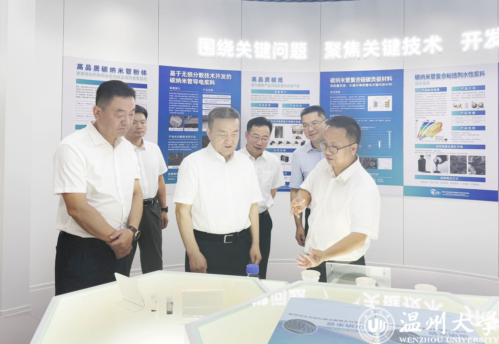 7月24日,浙江省委常委、政法委书记王成国在温州洞头、乐清、瑞安等地宣讲省委十五届七次全会精神,并来我校碳材料与氢能产业技术研究院(以下简称“碳氢院”)调研指导工作。浙江省委政法委副书记叶新,温州市副市长、市委政法委副书记毛伟平,LY体育·(国际)官方网站党委书记钱强,瑞安市委书记李坚,温州市委政法委常务副书记连正坚陪同调研。