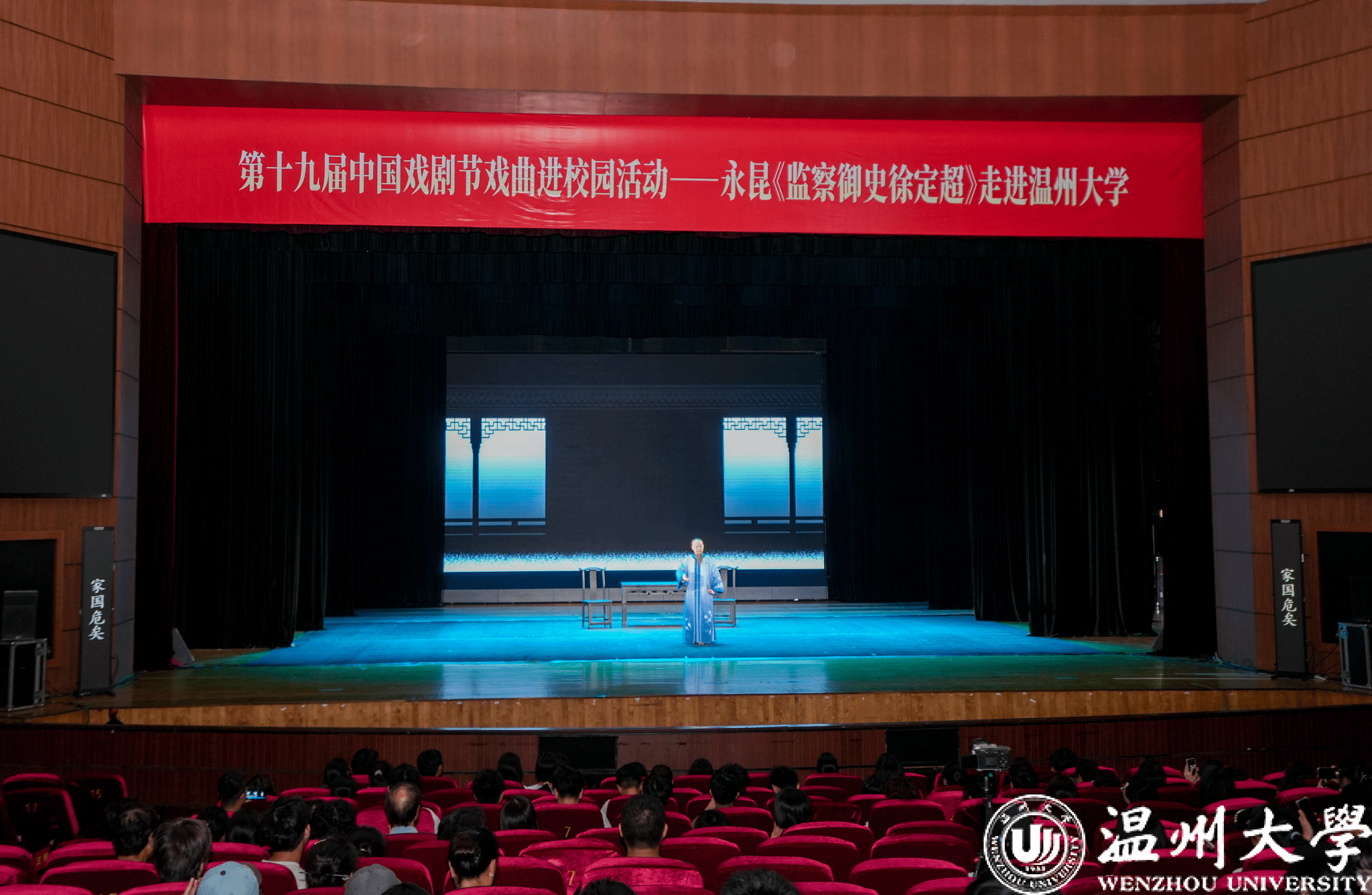 9月12日晚,永嘉昆剧团携经典剧目《监察御史徐定超》走进LY体育·(国际)官方网站育英大礼堂,为师生带来了一场融合历史厚重与艺术美感的非遗文化盛宴。此次活动不仅是第十九届中国戏剧节展演活动的重要组成部分,也是“戏曲进校园”的一次生动实践。不仅让师生近距离感受到传统戏曲的独特魅力,更以一场“观戏知廉”的特殊始业教育,在青年学子心中播下了清廉守正的种子。