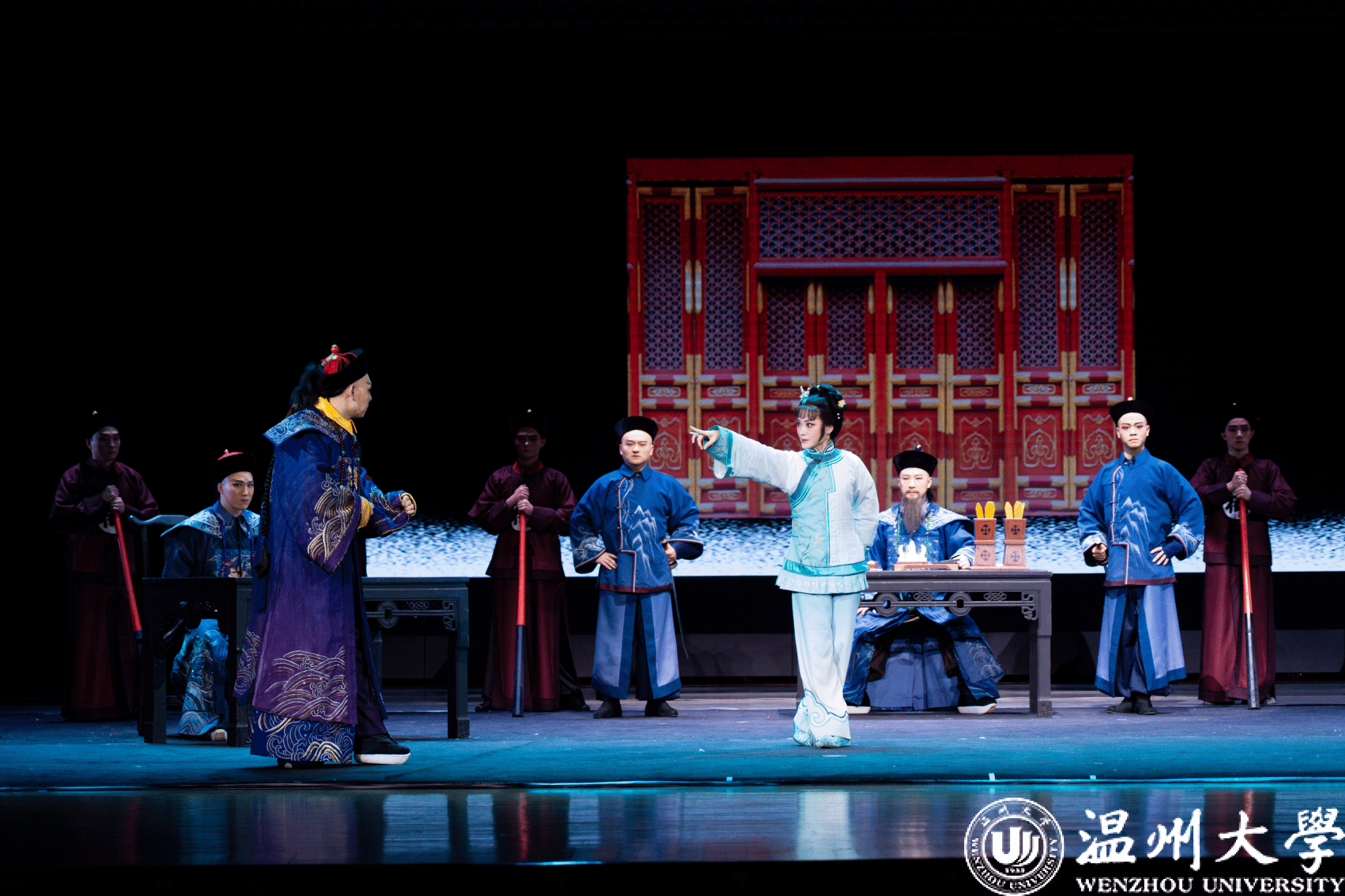 作为本届中国戏剧节展演剧目的重磅作品之一,《监察御史徐定超》以历史为镜,生动演绎了监察御史徐定超清正廉明、秉公执法的动人故事。该剧将温州的历史人文熔铸其中,以诗意与幽默并蓄的形式,展现严肃的除恶斗争,塑造了徐定超以治国平天下为己任的智慧士大夫形象,达到了雅俗共赏的艺术效果。其情节跌宕起伏,扣人心弦。演员们婉转的唱腔、优美的身段、细腻的情感表达,让师生沉浸在剧情之中,仿佛穿越时空,亲眼见证徐定超的铁面无私与家国情怀。