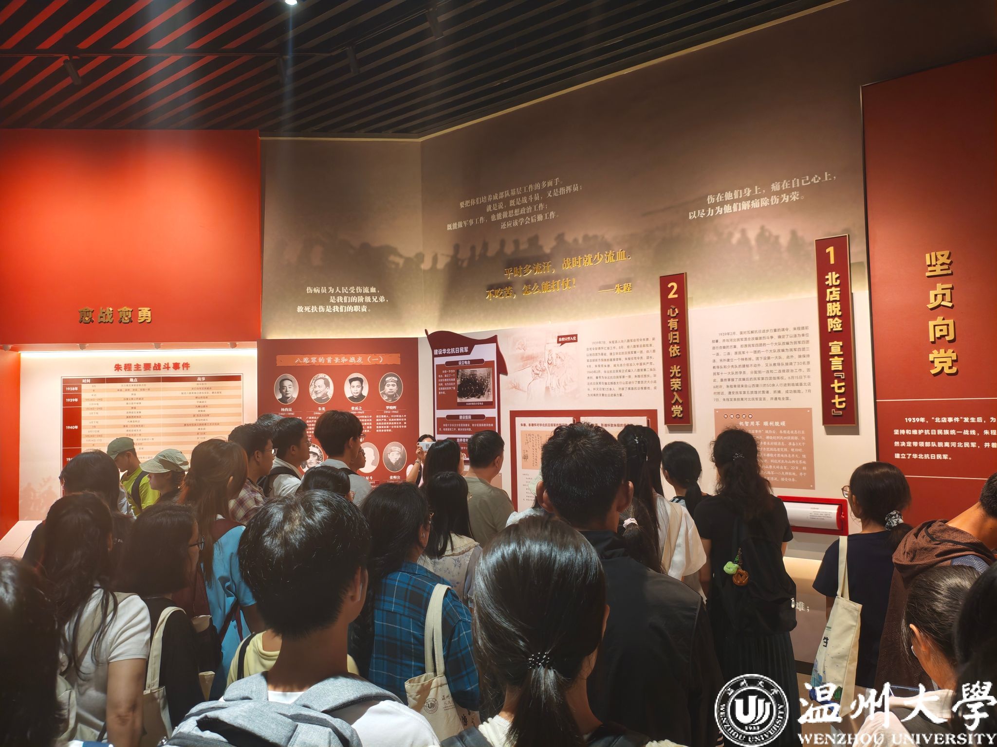 这场精心策划的活动,既是一次文化寻根之旅,更是一堂生动的“温州市情教育课”和“大思政课”。同学们还参观了苍南爱国主义教育基地朱程将军事迹陈列馆,在一件件饱经战火的文物、一张张珍贵的历史照片前驻足凝视,向这位浙南英烈致以深深敬意。在讲解员深情讲述着将军 “毁家纾难、投身抗战” 的壮举与“宁为玉碎、不为瓦全”的气节中,看着一件件承载历史的旧物和感人至深的文字,串联起朱程将军投身革命、英勇抗敌的一生。同学们认真聆听,深刻感受到爱国主义是融入温州这座英雄城市血脉中的信仰与担当。