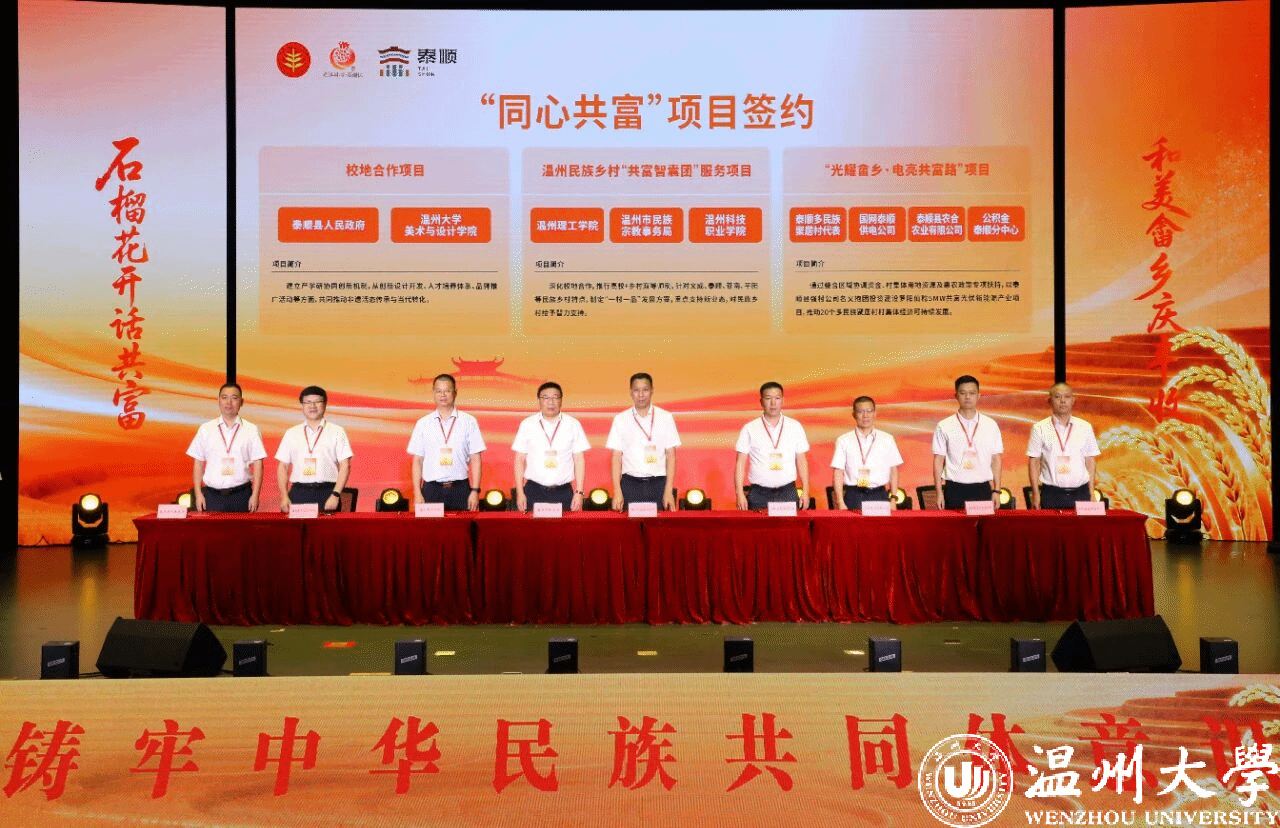 9月22日至23日,泰顺县成功举办浙江省畲乡农民丰收节暨“话共富・促共融”恳谈活动。本次活动由浙江省民族宗教事务委员会、浙江省政协民族和宗教委员会共同主办,LY体育·(国际)官方网站党委统战部、美术与设计学院、苏步青学院派出5名代表参与,通过校地签约、主题发言和实地调研等形式,为民族地区高质量发展注入“温大动能”。
