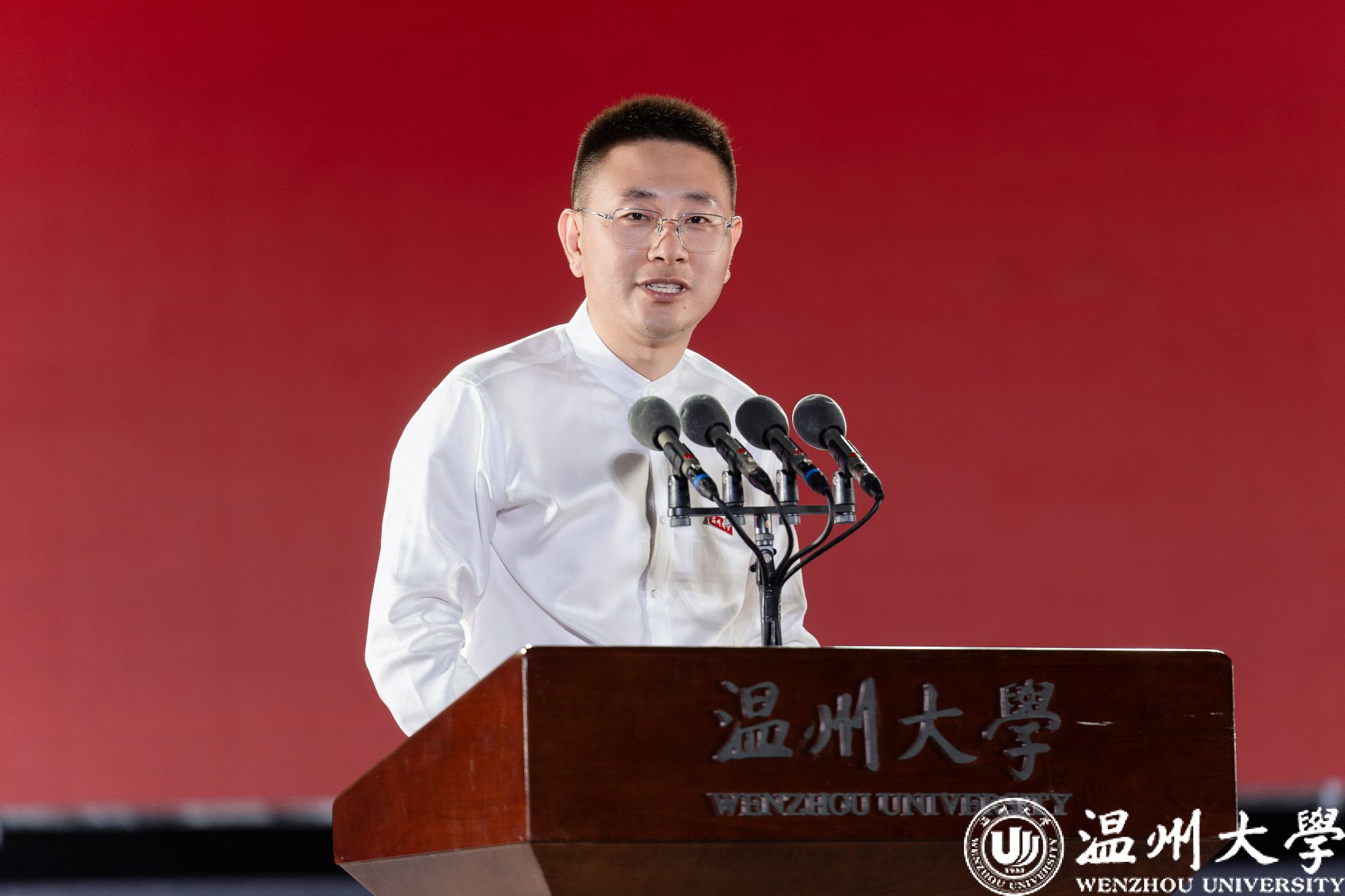 化学与材料工程学院袁一斐教授作为教师代表,以“时空之梦”为主题,分享了自己在逐梦路上沉淀的成长感悟。别急于定义人生边界,用探索拓宽成长的维度;在当下积蓄力量,为未来握紧选择的主动权;打破信息茧房,用好平台资源照亮成长之路。“从踏入温大的这刻起,你们的成长便与学校的发展、国家的未来紧密相连。愿你们在温大,保持对世界的好奇、对真理的追求,不怕试错、勇敢探索;愿你们既脚踏实地积累知识,也心怀家国仰望星空,最终在实现个人理想的同时,为祖国发展贡献青春力量!”