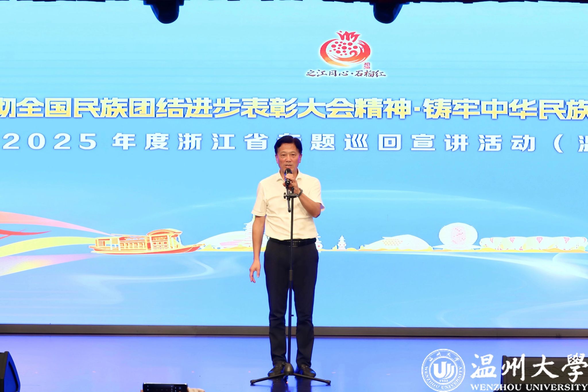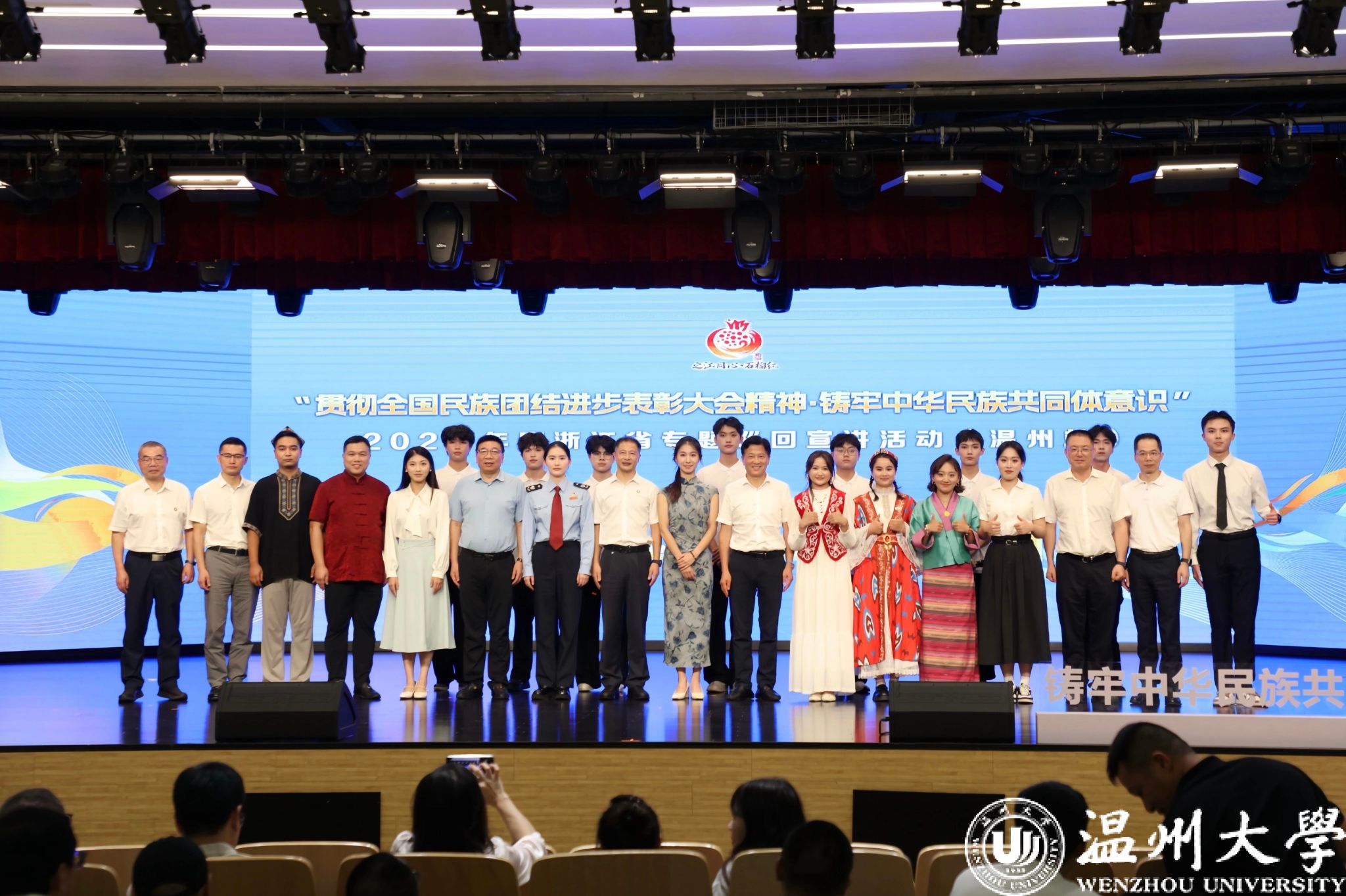 瓯越同心助强城,中华民族一家亲。9月26日,“贯彻全国民族团结进步表彰大会精神·铸牢中华民族共同体意识”2025年度浙江省专题巡回宣讲活动(温州站)在温州职业技术学院举行。我校师生受邀参加此次活动。
