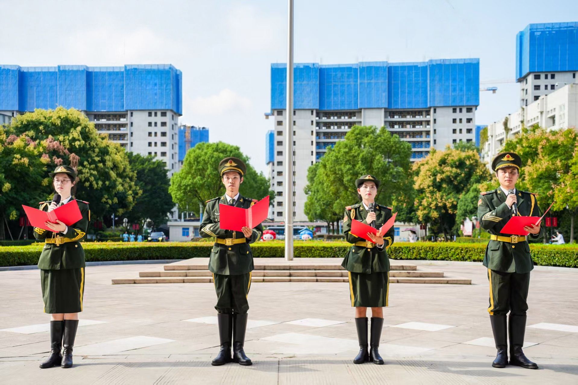 仪式特别设置了系列文化展演环节,以多元形式深化了爱国主义教育内涵。退役大学生擒敌拳动作刚劲、气势如虹,展现了军人本色与炽热忠心;诗朗诵《民族的丰碑》深情讴歌英雄精神,以语言艺术传递信仰力量;非遗展演《龙腾九霄》,舞姿矫健、腾跃起伏,演绎了不屈的民族精神与中华优秀传统文化的青春活力;维吾尔族同学表演的新疆舞蹈串烧,热情奔放、绚丽多彩,以艺术为桥梁,谱写了民族团结进步的美好篇章;全场大合唱《歌唱祖国》,歌声激越、情感真挚,将现场气氛推向高潮,寄托了全体师生对祖国繁荣昌盛、国泰民安的诚挚祝福。