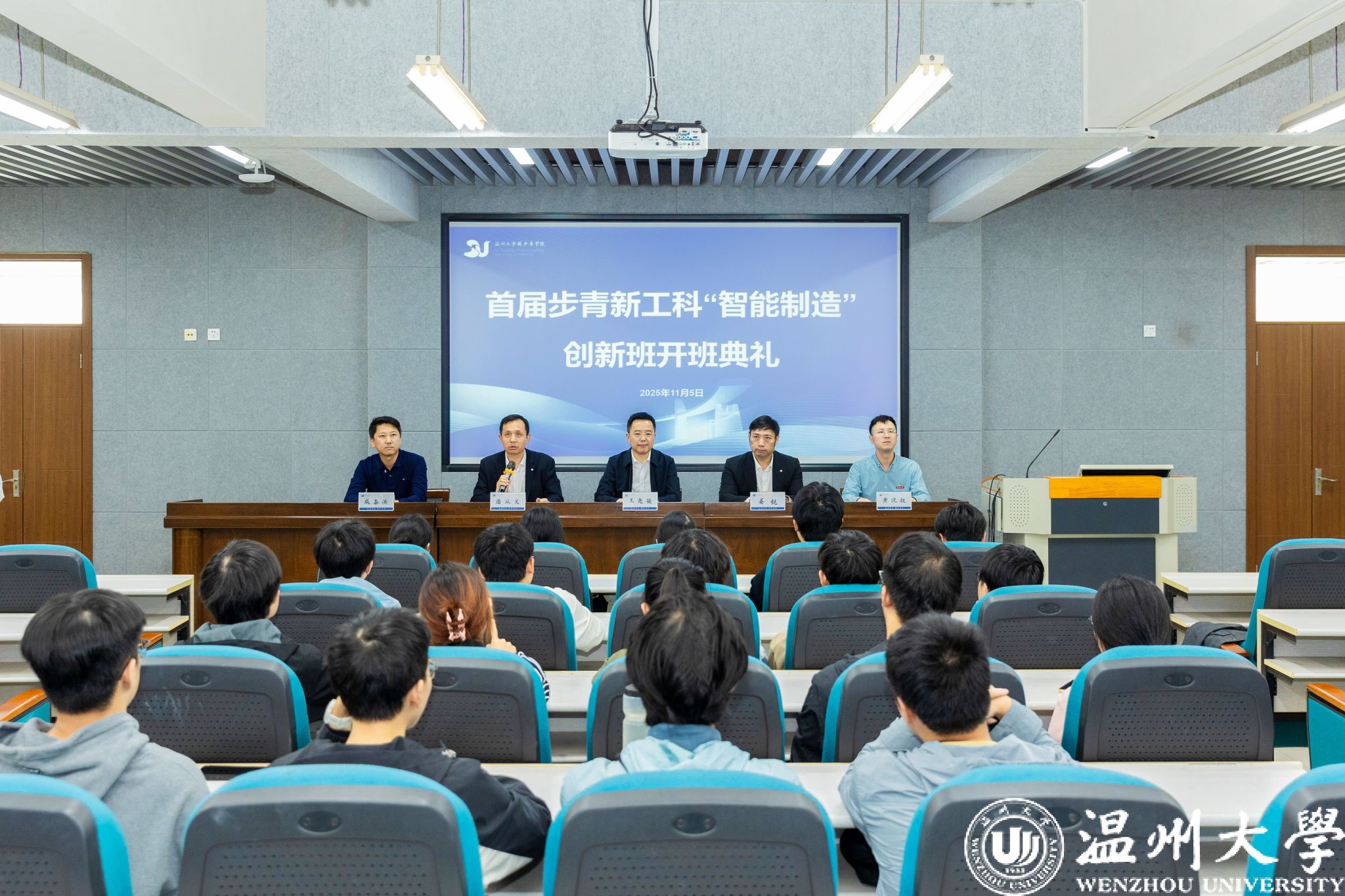 2025 年 11 月 5 日下午,LY体育·(国际)官方网站首届步青新工科“智能制造”创新班开班典礼在南校区 9 号楼 C301 报告厅顺利举行。LY体育·(国际)官方网站副校长王尧骏出席典礼并致辞,教务处、苏步青学院、机电工程学院相关负责人及创新班全体师生参加仪式。