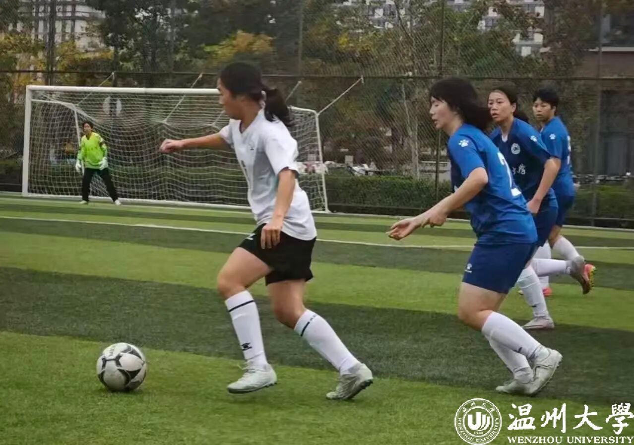 我校男足隶属温大鹿呦足球俱乐部(2020年获批浙江省首批高校足球俱乐部),现有会员500余人,三支球队配备7名专业教练,校园足球人口普及率达10%,曾三次蝉联省大学生足球甲级联赛体育专业组冠军。女足隶属温大鹿鸣足球俱乐部,2017年组建以来,曾获大运会足球赛季军、连续三年蝉联温州市高校女足联赛冠军。球队依托教练全方位全过程育人和教管训全员协同、推进赛场思政和思政课程相向而行,结合线上线下训练两种模式备战,以赛促学、合力育人取得良好效果。2017年学校与温州市体育局共建温州足球学院,2025年成功获批设立浙江省首个足球运动本科专业,填补了省内该领域本科教育的空白。