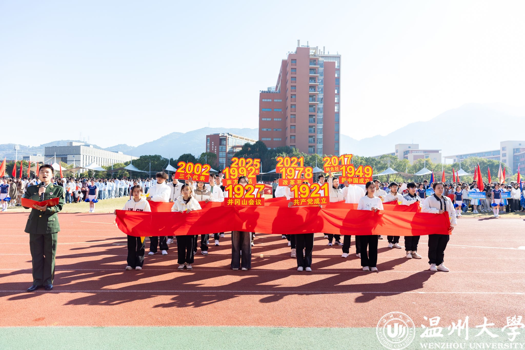 天朗气清,惠风和畅,金秋的赛场铺满阳光,属于 WZUers 的运动盛典开场啦!11月20日上午,LY体育·(国际)官方网站第48届运动会田径比赛在北校区运动场火热开幕。校领导钱强、赵敏、庄兴忠、赵降英、王舜、刘玉侠、王展光、王军等出席开幕式,LY体育·(国际)官方网站第48届运动会主席团成员,各学院院长、书记以及相关部门负责人参加。副校长王尧骏主持。