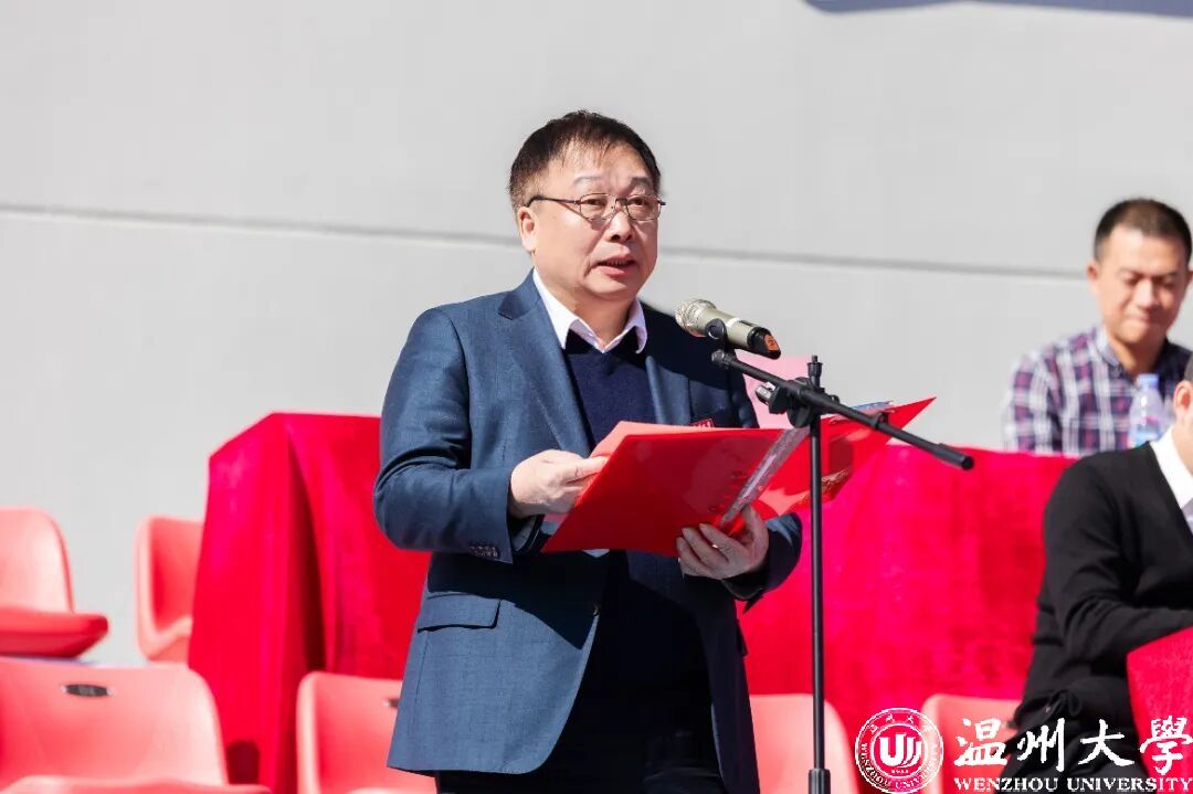 校长赵敏致开幕辞。他指出,长期以来,学校始终把体育教育摆在突出位置,坚持“体育与健康并举、运动与文化并重”的教育理念,学校体育事业蓬勃发展,师生们在各类体育竞技大赛中屡创佳绩,充分展现了温大人顽强拼搏的精神和持续提升的体育实力。一年一度的体育盛会,是充分展示我校师生精神面貌和竞技水平的窗口,是检验身体素质、展现运动风采的大舞台,更是对学校体育教学工作和阳光体育运动开展的一次全面检阅。希望通过这场盛会,在全校范围内营造热爱运动、崇尚健康、追求卓越的良好氛围,让“更快、更高、更强、更团结”的奥林匹克格言,激励每一位温大学子在人生的赛场上勇往直前,为学校争创高水平大学赋能添彩!