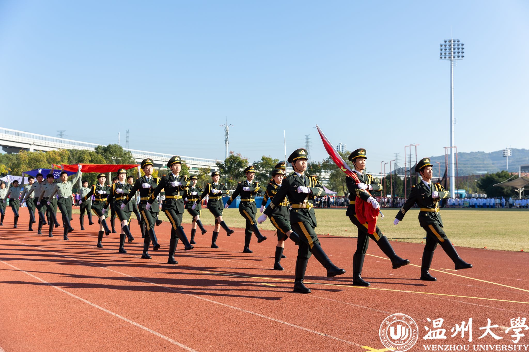 各学院方阵依次走过主席台,创意纷呈间尽显学院独特底蕴与昂扬风采。有的学院紧扣专业特色巧思编排,将学科魅力与文化内涵融入展示之中;有的学院学子身着绚丽民族服饰,以挺拔姿态诠释团结奋进的精神内核。全场学子精神抖擞、口号铿锵,以饱满昂扬的姿态,生动彰显出温大学子的蓬勃朝气与奋进斗志。