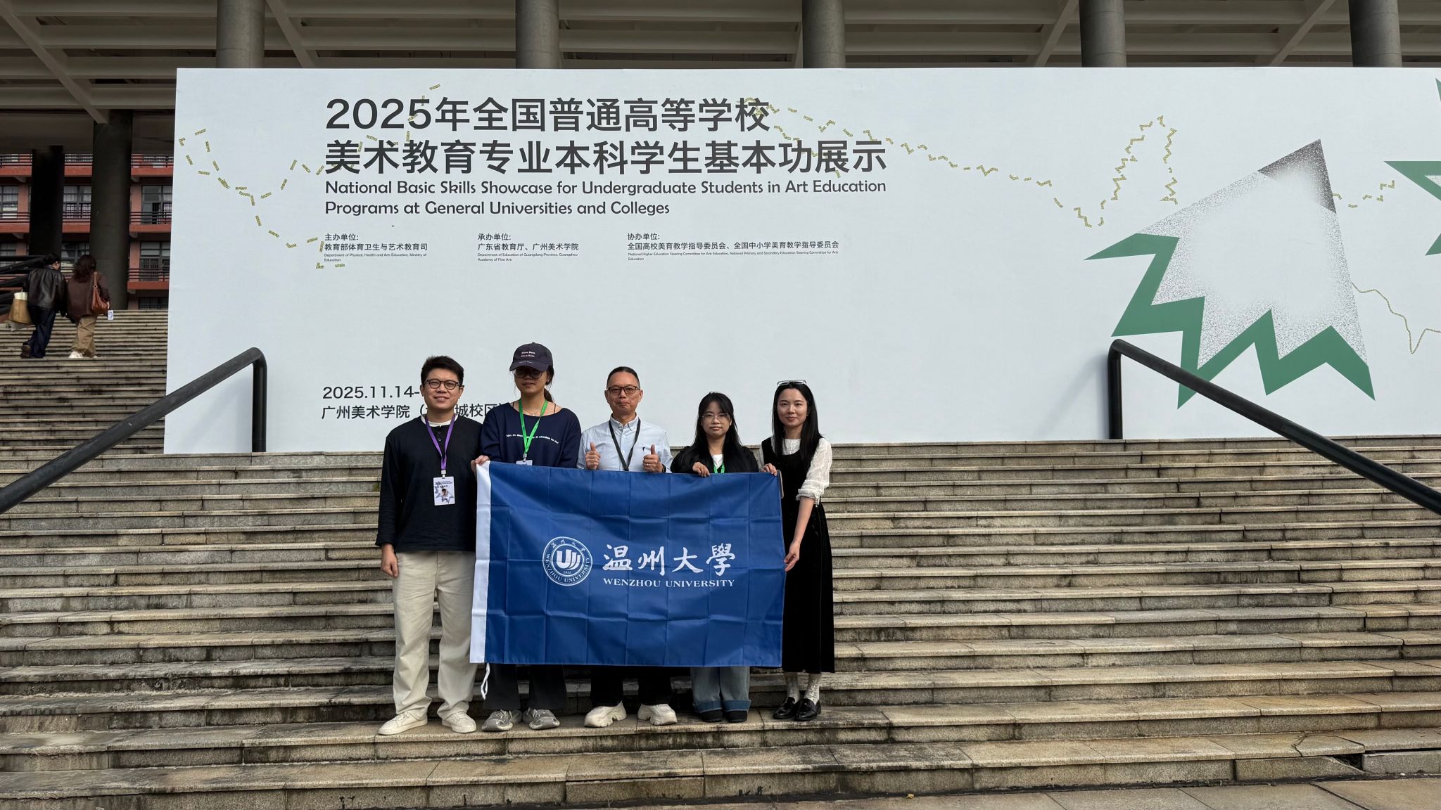 2025年全国普通高等学校美术教育专业本科学生基本功展示活动由教育部体育卫生与艺术教育司主办,广东省教育厅、广州美术学院承办,于2025年11月14日-17日在广州美术学院(大学城校区)举办。我校选手经过层层选拔,与来自全国31个省(自治区、直辖市)和新疆生产建设兵团的86所高校258名学生、86名指导教师共同参与了本次展示活动。活动涵盖教学展示(微课)、现场教学展示(说课)、专业技能展示、审美和人文素养展示及社会实践等项目,全面检验美术教育专业师生的综合素养。