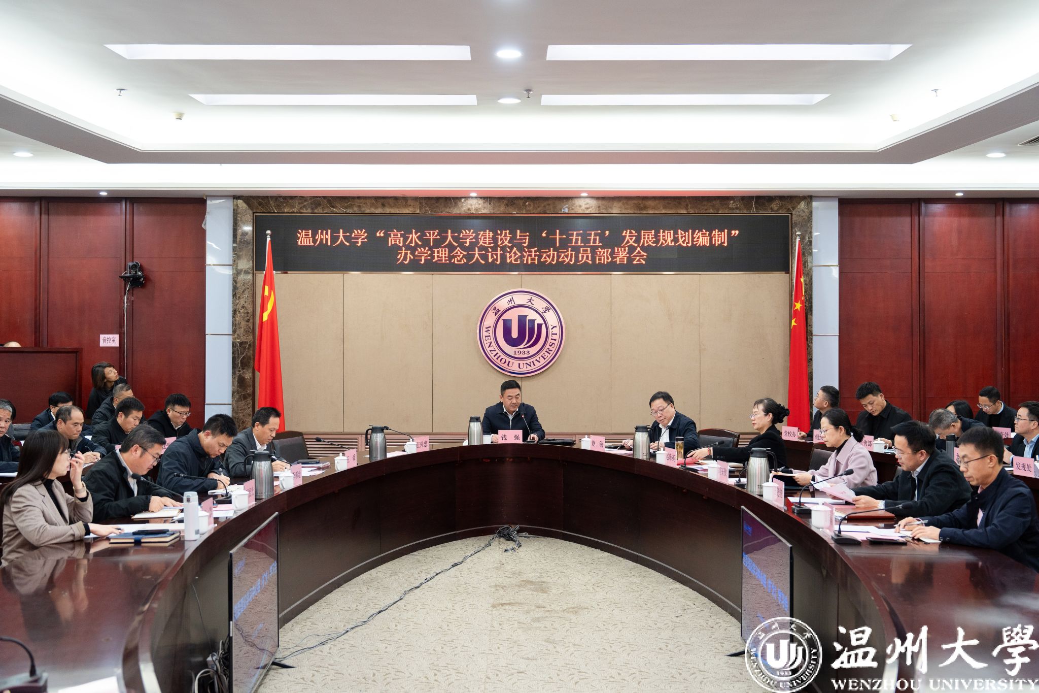 为深入贯彻落实党的二十届四中全会精神,科学编制学校“十五五”发展规划,12月9日下午,我校在南校区岩松堂白鹿厅召开“高水平大学建设与‘十五五’发展规划编制”办学理念大讨论活动动员部署会。校党委书记钱强主持会议并作动员讲话,全体校领导、各部门负责人、各学院书记参加会议。