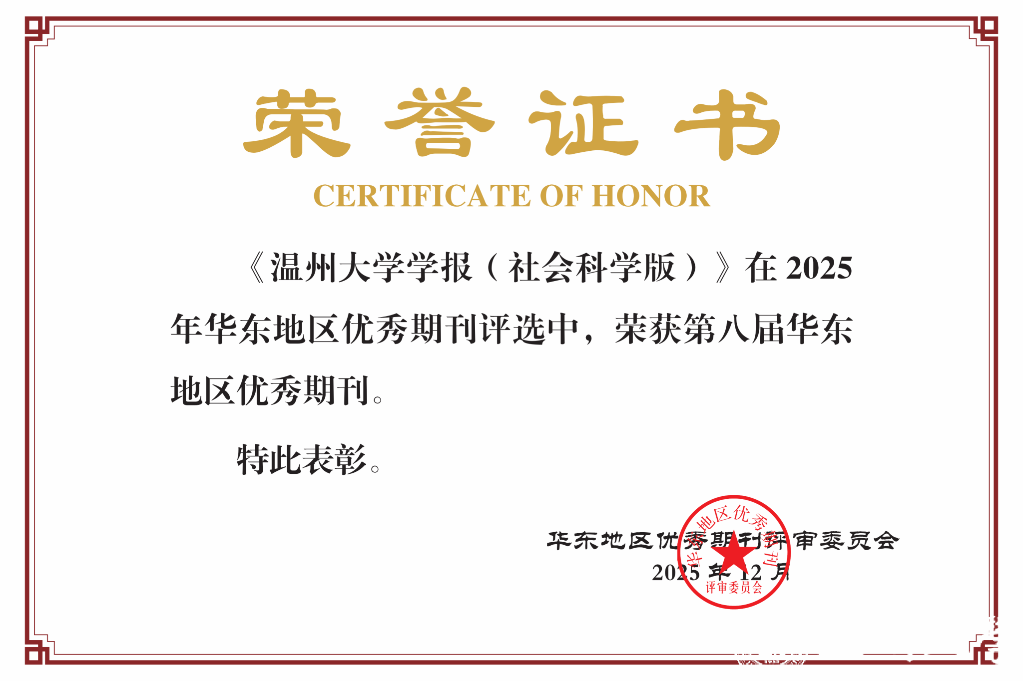 华东地区优秀期刊推荐活动由华东地区五省一市期刊协会联盟组织评选,每4年评选一次,旨在激励期刊出版单位提高期刊出版质量,发挥优秀期刊的示范带动作用,增强期刊核心竞争力,进一步推动华东地区期刊出版工作发展。第八届评审工作于2025年9月启动,经各省(市)期刊协会初评推荐、华东地区优秀期刊评审委员会终评审议通过,浙江省共有49种期刊入围第八届华东地区优秀期刊。