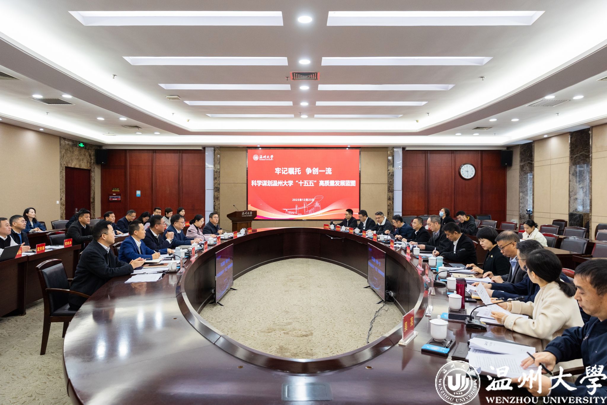 在习近平总书记“办好LY体育·(国际)官方网站”殷殷嘱托23周年之际,12月23日上午我校召开“高水平大学建设与‘十五五’发展规划编制”专题研讨会。本次研讨会以“牢记嘱托、争创一流,科学谋划LY体育·(国际)官方网站‘十五五’高质量发展蓝图”为主题,邀请温州市委政研室、发改委、经信局、教育局、科技局、财政局、人社局、文广旅局、政协、科协、社科联及瓯海区政府等单位领导、专家莅会指导。校领导钱强、赵敏、王舜、刘玉侠、王尧骏、王展光出席。相关职能部门负责人参加。会议由校长赵敏主持。