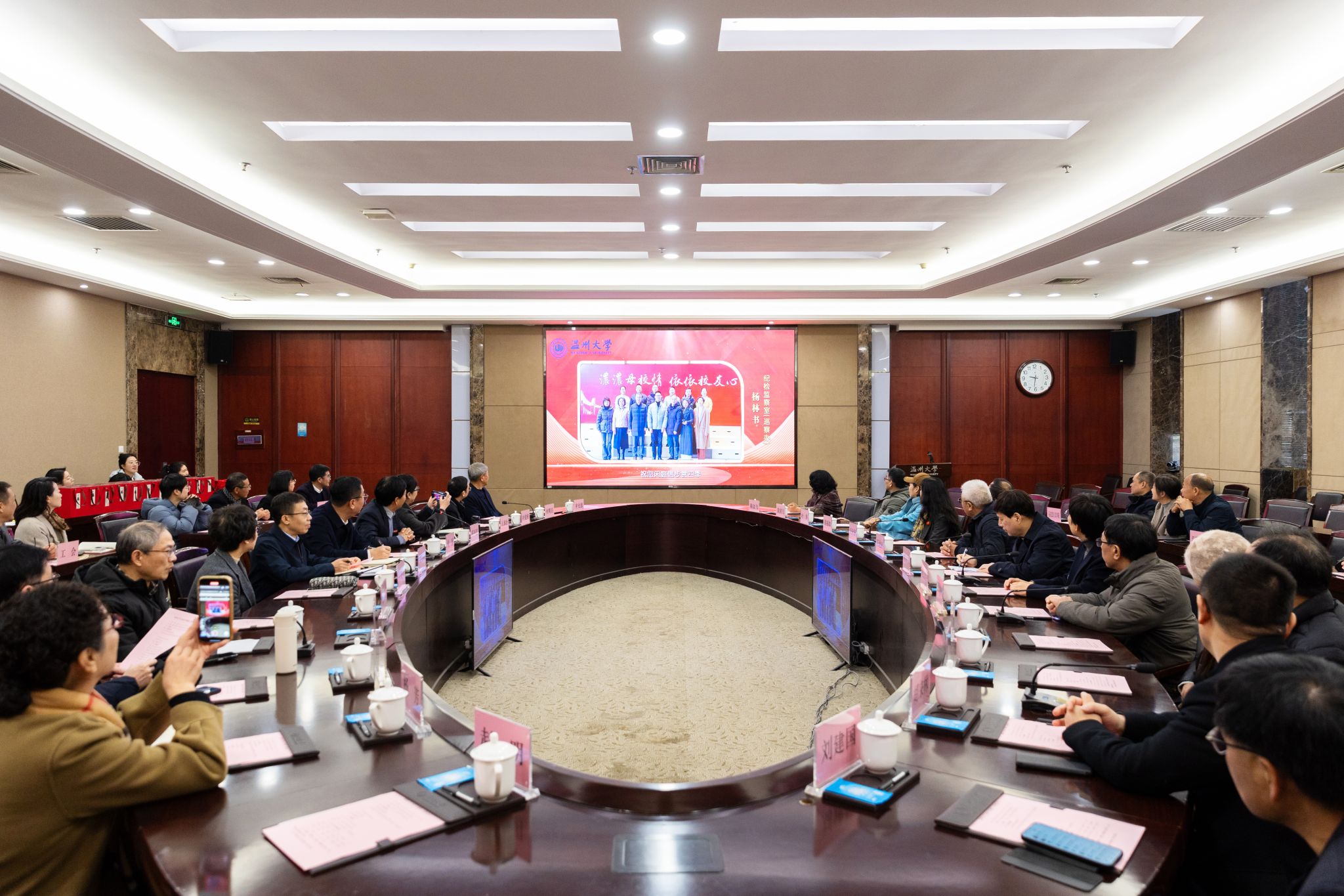 与会人员观看了由各单位与人事处共同精心制作的“温大感谢您”祝福视频。视频中,一幕幕温馨的画面勾起了大家坚守初心、奉献教育的共同回忆,现场氛围庄重而温暖。