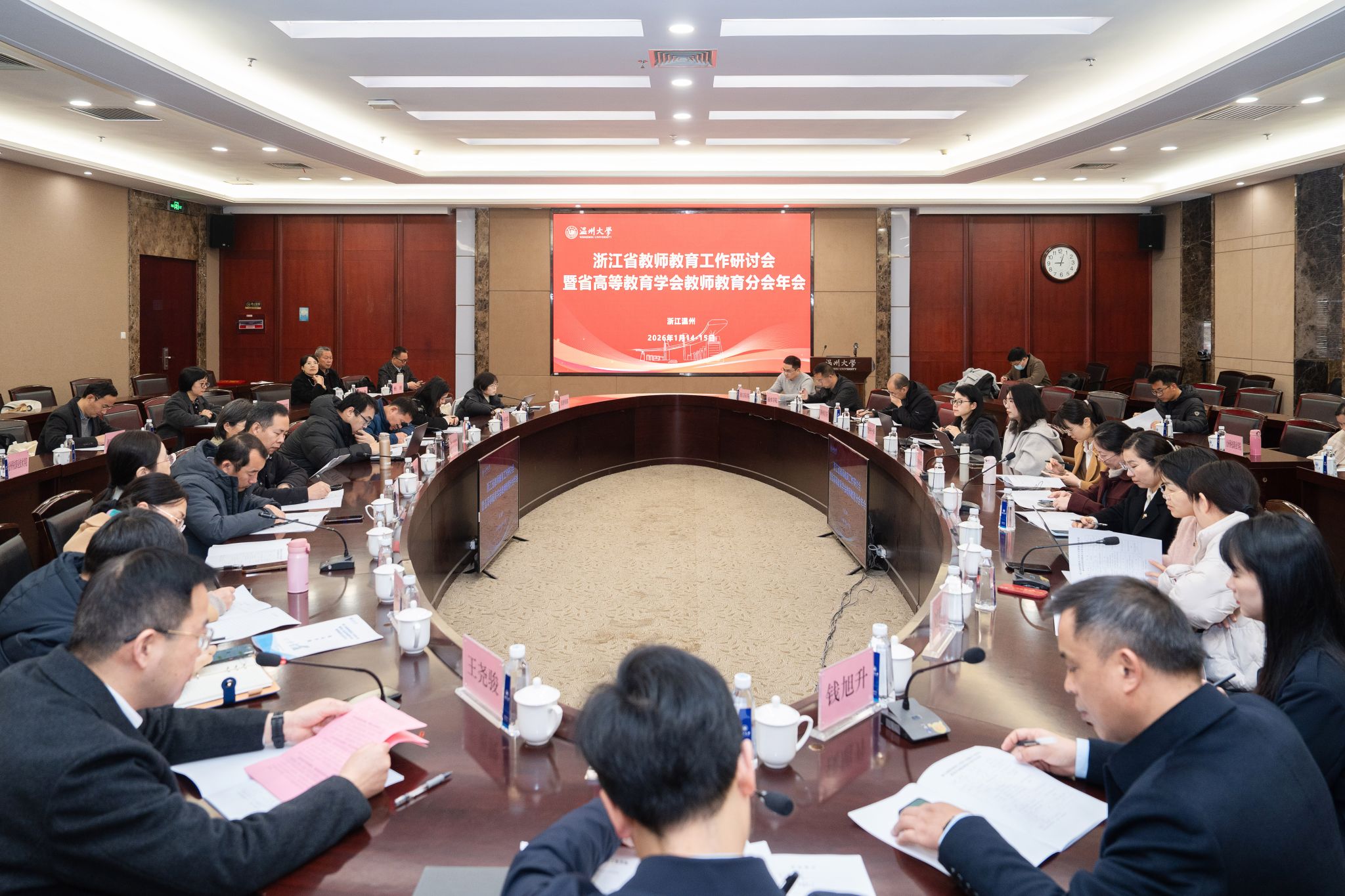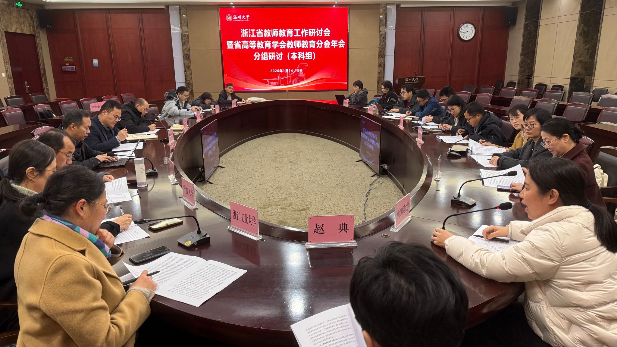 1月14-15日,浙江省教师教育工作研讨会暨浙江省高等教育学会教师教育分会年会在我校顺利召开。浙江省教育厅教师工作处副处长赵典、LY体育·(国际)官方网站副校长王尧骏出席,教师教育分会会员单位、来自全省24所师范生培养院校的代表参加了本次会议。